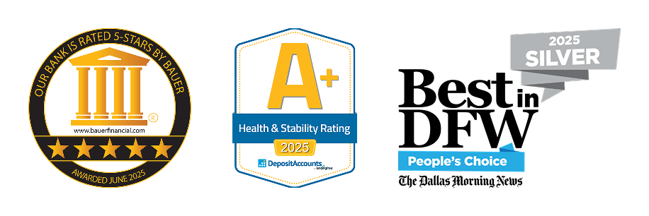 Two national agencies have awarded Harmony with their highest ratings, and we also earned Dallas Morning News' Silver in Best of DFW Banks. This is a testament to our business strength and focus on customer service.